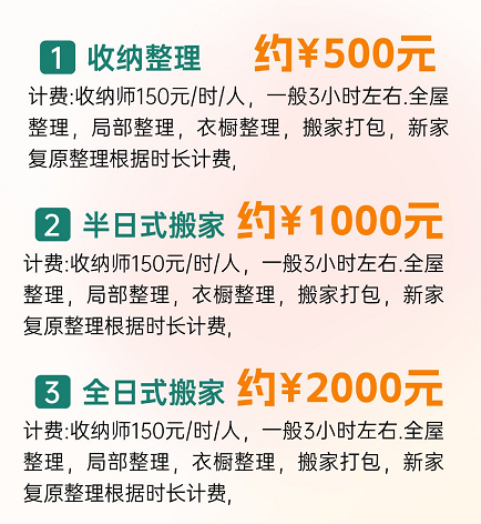 收纳师提供的服务的价格构成